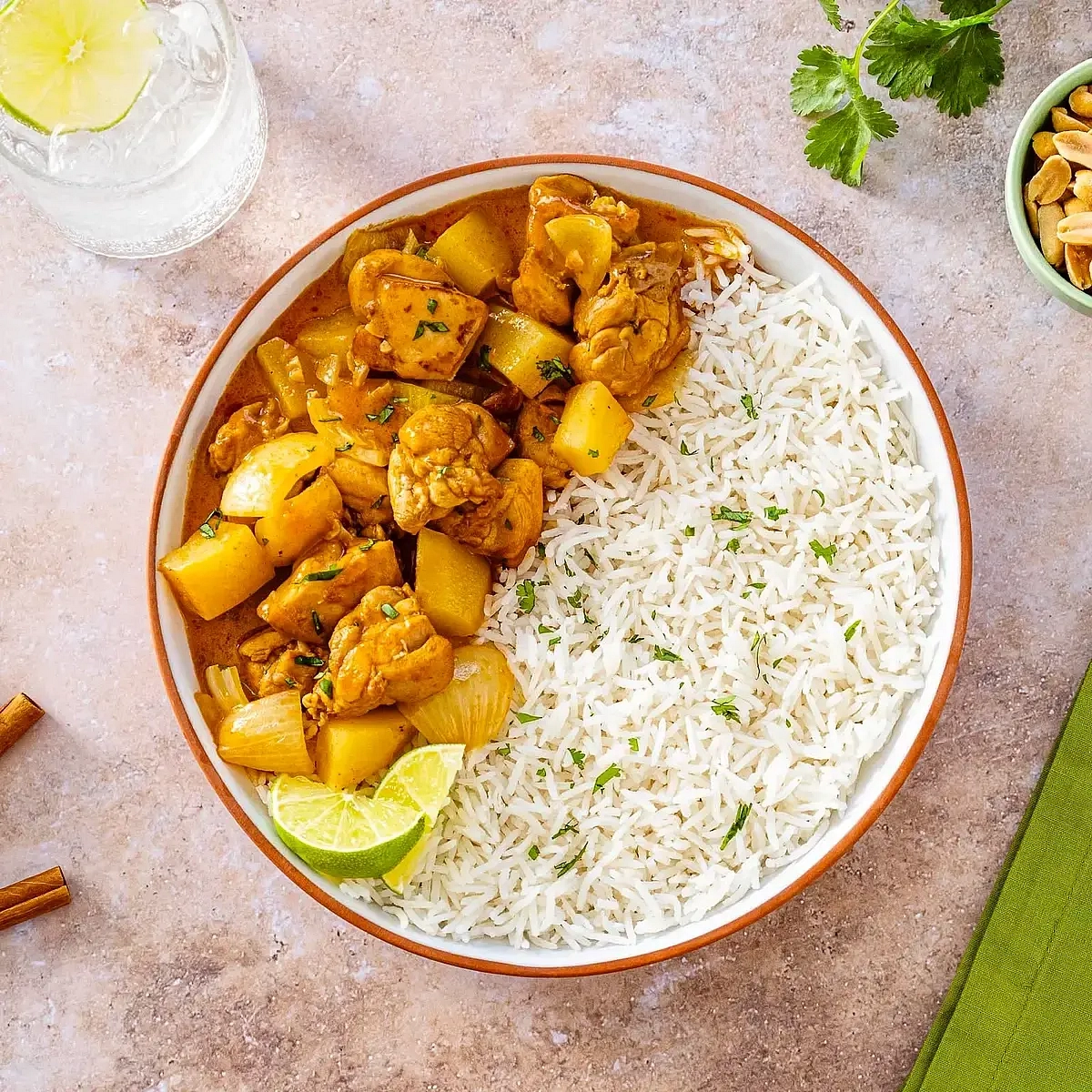 Flavored with cinnamon, cloves, cardamom and cumin, its sauce also includes coconut, lime juice, and fish sauce. In this version, chicken thighs take the place of beef, for a weeknight-ready dish that’s pure comfort in a bowl.