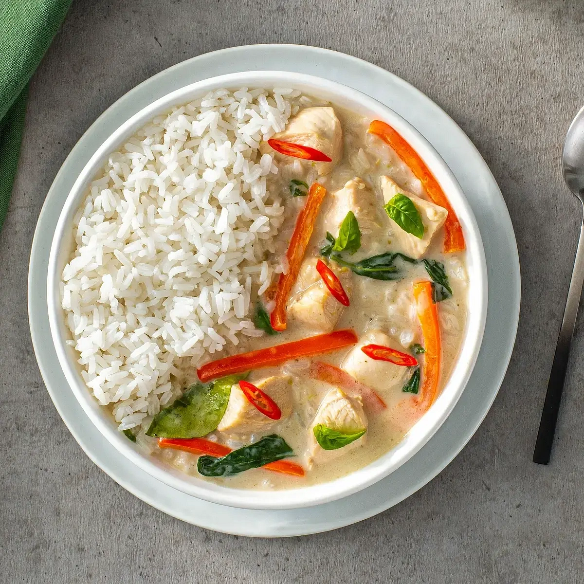 For this comforting dish, piquant green curry paste and luxe coconut cream form the base of a silky, rich broth. Mixed with poached chicken, vegetables and RiceSelect® Jasmine Rice, that zesty sauce becomes a complete meal.