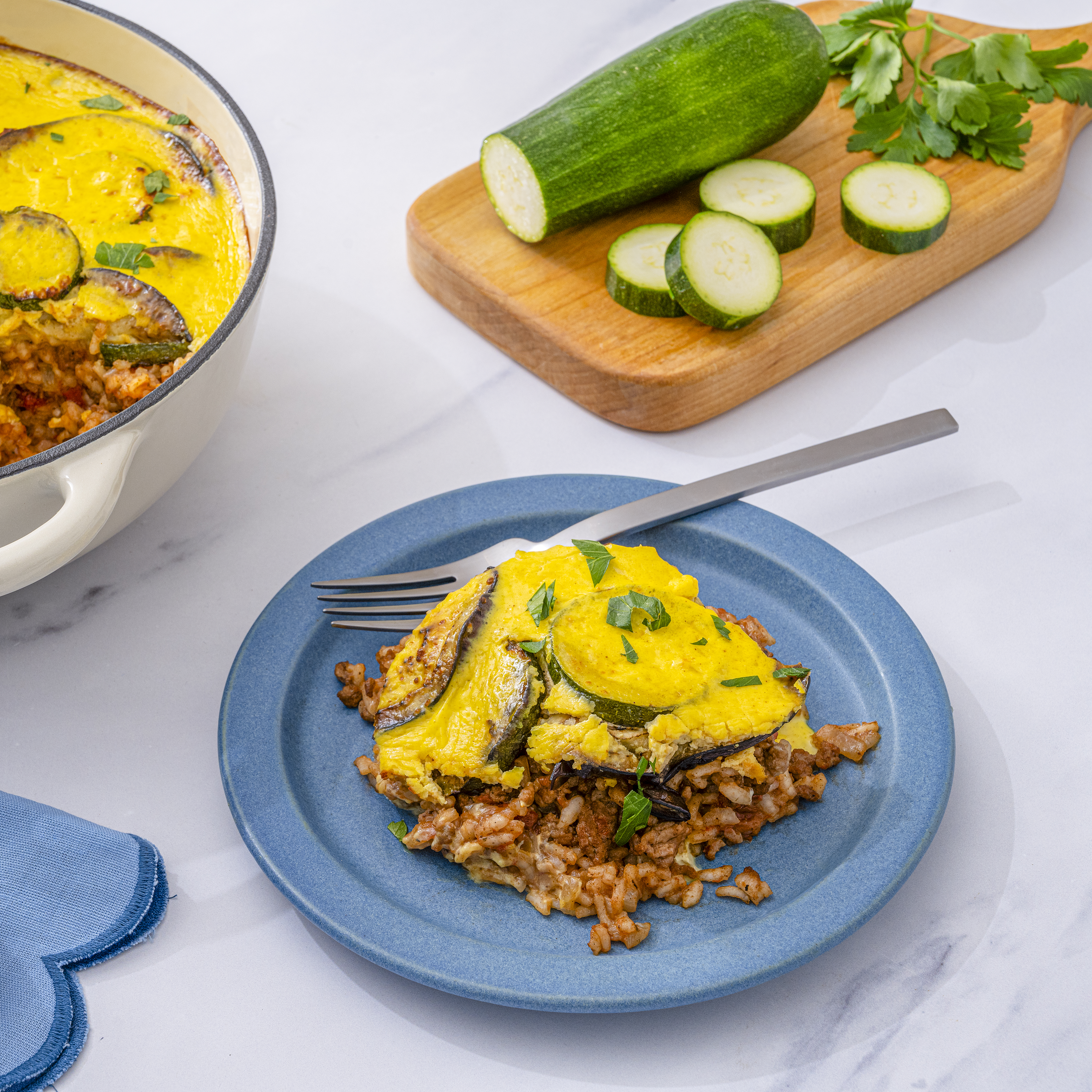Finding the right dish to bring to a Friendsgiving potluck feast can be tricky. It’s always best to ask ahead of time what others plan to bring. However, if you’re eager to steal the show with your culinary skills, then we’ve got just the recipes for you. This One Pot Beef and Rice Moussaka is a mouthwatering variation on a classic Greek recipe. What’s more, it’s perfect for sharing at holiday season gatherings.