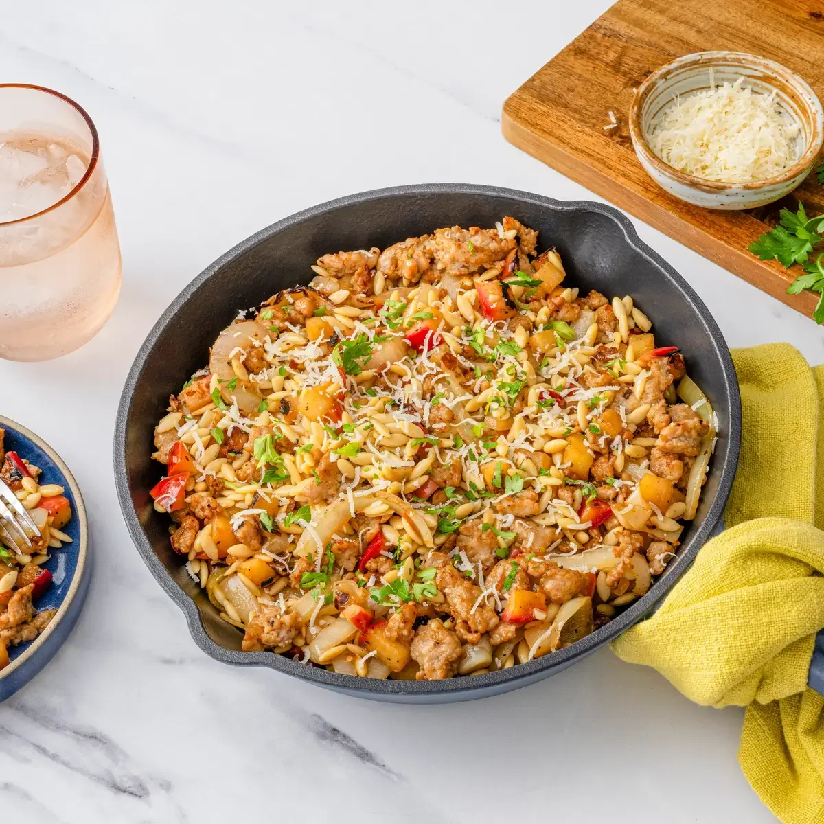 Salads sure have a lot of upside. They’re both easy to make and easy to put your own spin on. You can serve them as a side dish to be passed around the table or put them in containers and take them with you as your potluck offering. If you’d like to treat your friends to a unique salad experience, try this Orzo Salad with Sausage, Apple and Onion. Sweet and savory, don’t be surprised if you’re asked to share the recipe on the spot!