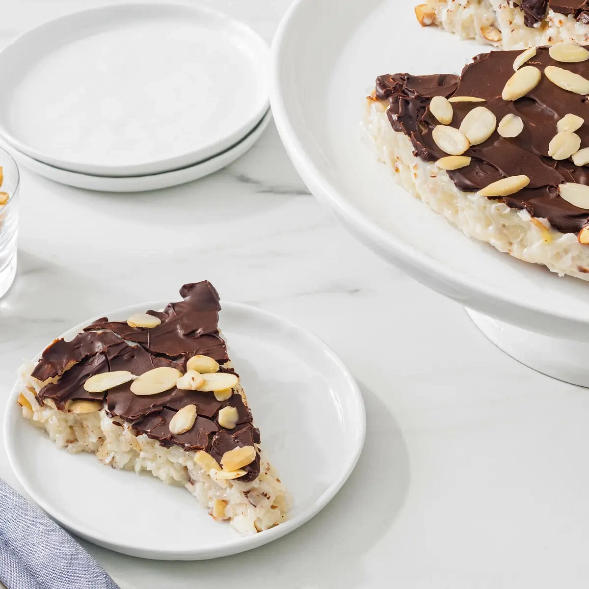 Almond-studded and glazed in chocolate, this elegant dish merges the showy appeal of a full-sized dessert with the chewy delight of a candy bar. RiceSelect® Sushi Rice is the surprise ingredient that, mixed with condensed milk, coconut and almonds, ensures every morsel is irresistible—and gluten-free.