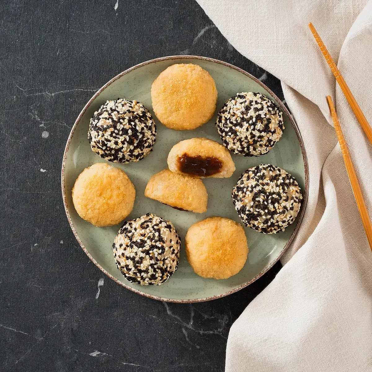 Beloved in Japan, wagashi are a type of typical confection, often made with rice, red bean paste and sugar. In this take on the classic, RiceSelect® Sushi Rice is sweetened, cooked and mashed until sticky and soft. It’s then filled with red bean paste and rolled in sweetened sesame seeds and soybean powder, for a delicately nutty and sweet treat.