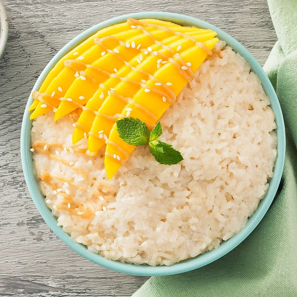 Find the ripest mangos you can for this Thai-style sticky rice dessert. Or substitute mango with pineapple, berries, guava, or papaya. Whichever you choose, the elegant combination of sweetened, coconut-flavored RiceSelect® Sushi Rice, coconut syrup and fruit is guaranteed to please.