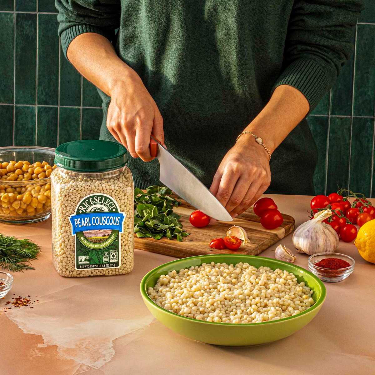 The choice to use either smaller Moroccan couscous or larger Pearl Couscous is entirely up to you! Get creative with your recipes by changing it up. You’ll find that I use a combination of both of these types, however it all comes down to preference when cooking. I always recommend using quality ingredients, and for that reason I exclusively use RiceSelect® couscous products.