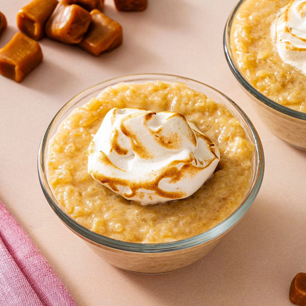 In a mixing bowl, beat egg whites until soft peaks form; gradually add remaining 1/4 cup of brown sugar. Continue to beat until stiff peaks form. Spread meringue over each pudding.